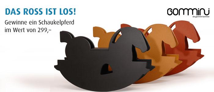 Verlosung Schaukelpferd Das Ross von Gommini im Wert von € 299: Bis 25. Juli 2011 konnte man bei diesem Gewinnspiel mitmachen. Der Gewinner konnte zwischen dem schwarzen oder gelben Gommini Schaukelpferd wählen. Gewonnen hat das Ross T. Penth aus 54317 Morscheid. Details zum Schaukelpferd Gewinnspiel: