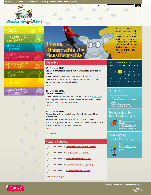 Die Parlaments-Website für Kinder präsentiert sich seit kurzem im neuen Design. Pünktlich zum zweiten Geburtstag der "Demokratiewebstatt" wurde die Startseite einem gründlichen Relaunch unterzogen. Wir finden die Seite ist sehr gut gelungen.