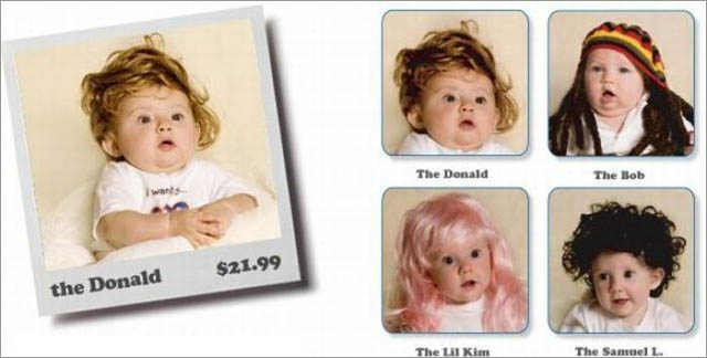 2. Da Babies ganz unnatürlich ohne viel Haar auf die Welt kommen, gibt es für knapp 20$ Perücken um den Kleinen volle Haarpracht zu verleihen.