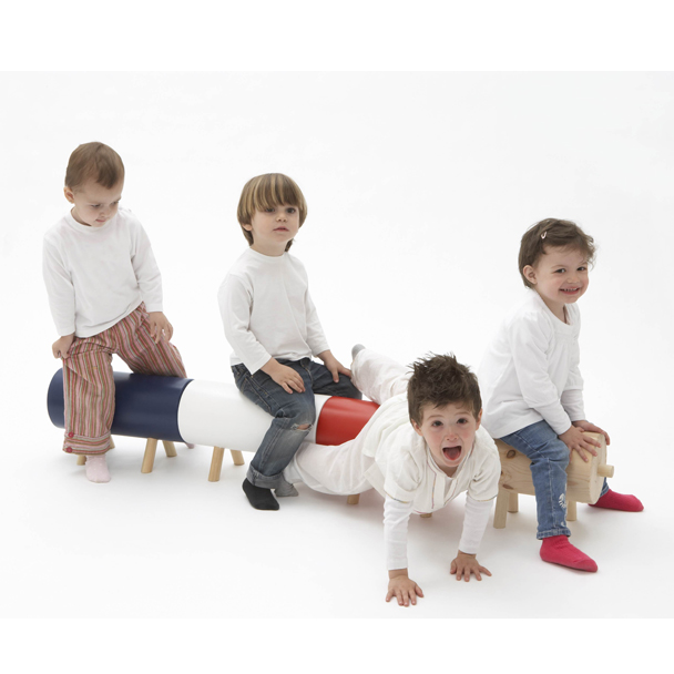 Caterpillar ist mehr als ein Stuhlsystem für Kinder, es ist nämlich auch Spielzeug, das nur darauf wartet, bewegt zu werden. So kann man nur einen Stuhl als Kindersitz benutzen oder aber mehrere Elemente und diese ineinanderstecken, sodass daraus eine bunte Schlange oder ein Zug entsteht. Dieses Sitztier darf dann klarerweise von den Kindern beritten werden. Erhältlich ist es in verschiedenen Farben. Das Design dafür hat Alberto Marcos für Ninetonine entworfen. Grundmaterial ist wiederum massives Holz, die Masse für ein Sitzelement sind 33 x 25 x 18 cm.