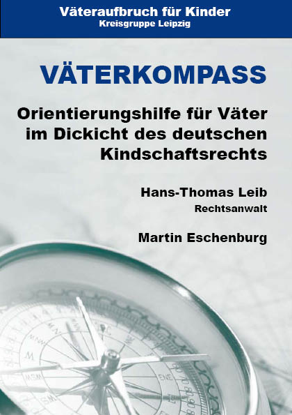 Für Väter gab es bisher nur wenig Hilfen. Aus diesem Grund hat der „Väteraufbruch für Kinder Leipzig e.V.“ erstmals einen umfassenden Ratgeber für Väter herausgegeben, der nun in einer zweiten überarbeiteten Auflage erhältlich ist. Der Väterkompass wendet sich an Väter, die sich in der Situation vor, in oder nach einer Trennung befinden und der diesen dabei helfen soll, den Kontakt zu ihren Kindern zu bewahren und auszubauen. Dabei beschäftigt sich der Ratgeber nicht nur mit juristischen Punkten, sondern auch mit Fragen, die beim Umgang mit Jugendamt und Gericht entstehen, und berücksichtigt die seit dem 1. September 2009 durch das neue FamFG geänderte Familienrechtsprechung.